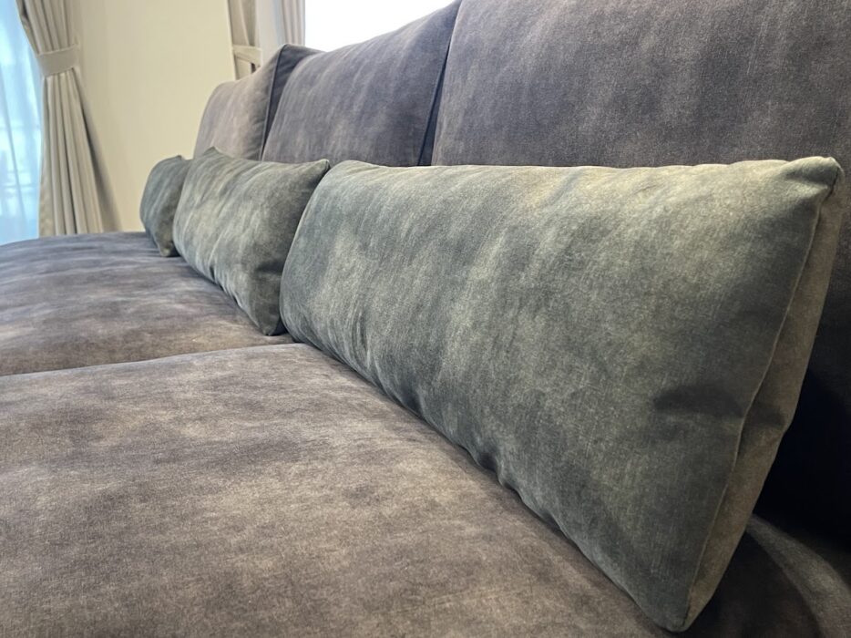 ベルベットは一番最近ラインナップに追加された張地なのですが、当店でも大人気です。高級感がありながら、どこか懐かしさも感じさせる毛足の短いベロア調で、肌触りもしっとりとして、思わず触りたくなってしまう癖になる気持ちよさがあります♪