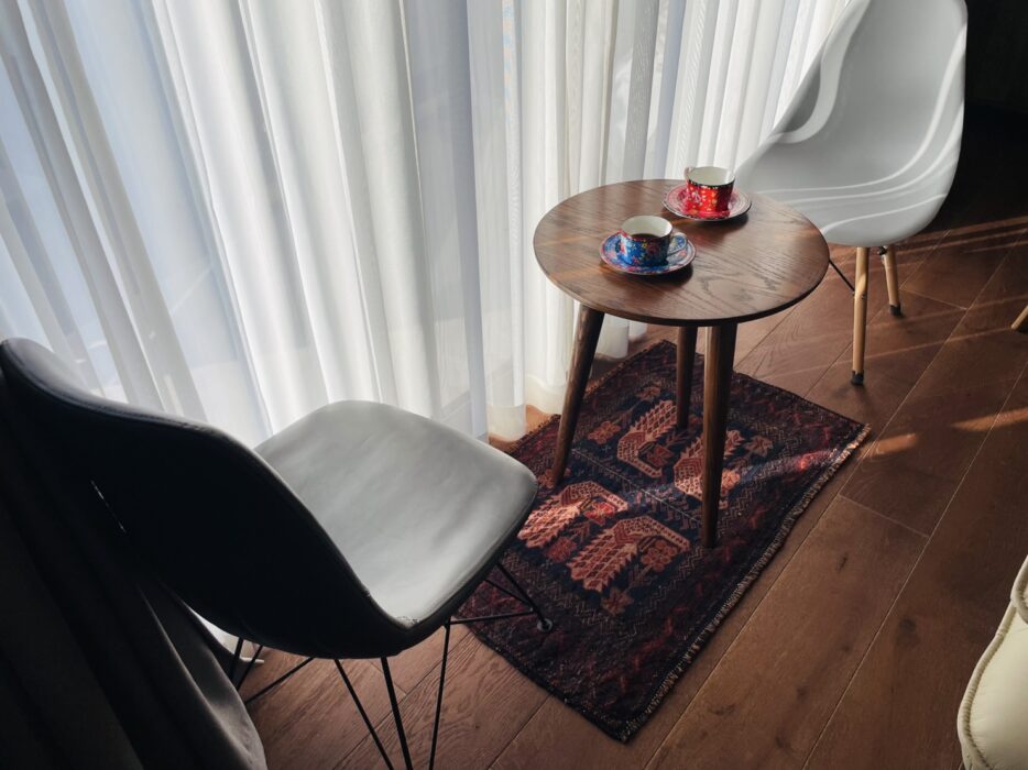 窓辺に小さいラグを置くだけで、空間が一気にカフェのようなおしゃれな空間に。