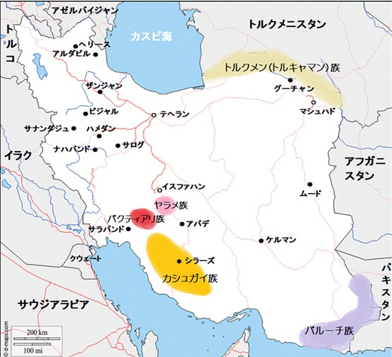 カシュガイ族、バクティアリ族、ヤラメ族、バルーチ族等が有名です。