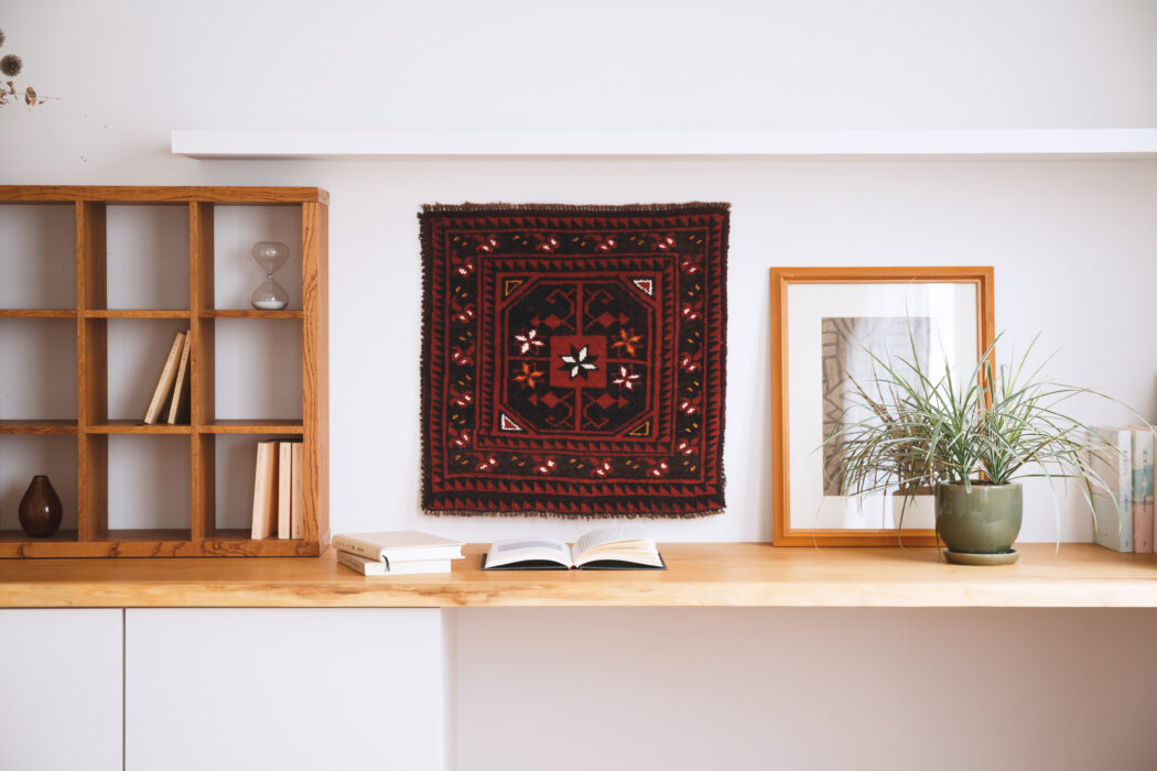 今回もご用意する絨毯は玄関サイズからリビングサイズまで様々な大きさで展開しております。移動が多い遊牧民が実際に使っていた絨毯なので、小さめのサイズが多いのも特徴です。日本のコンパクトな住宅事情にもマッチしており、玄関はもちろんのこと、デスク下、ベッド下、またはリビングに重ね敷きしたり、壁にアートして飾ったりと使い道は様々です。