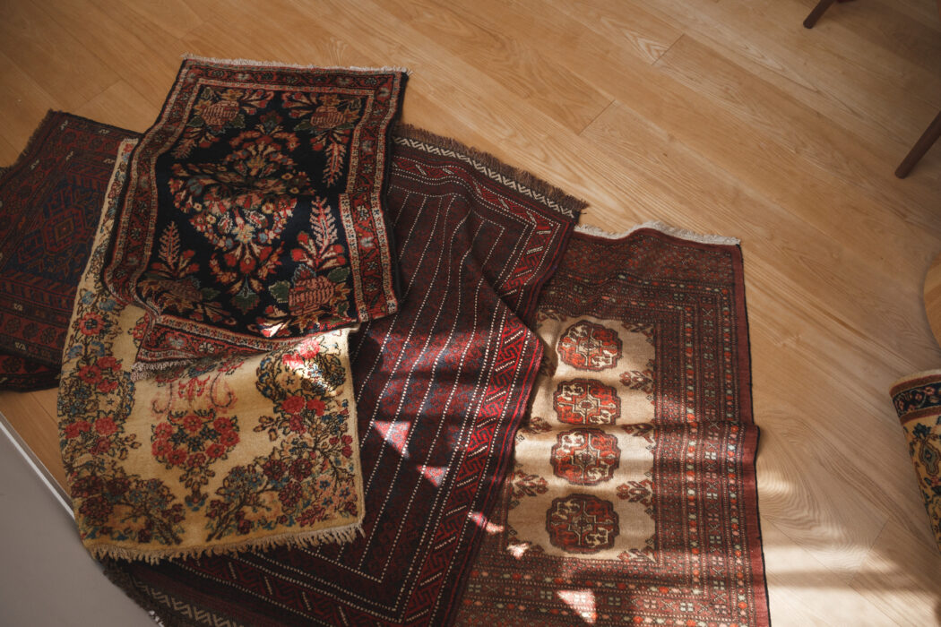 全て一点モノの絨毯はとても見ごたえがあり、比較的新しいものでも20年前、古いものですと40年前のものもございます。手織りで丁寧につくられた絨毯だからこそ、長持ちしますし、ヴィンテージ絨毯特有の経年変化や実際に暮らしの中で使われていたストーリーを感じられるのも、ロマンがあり、ヴィンテージラグの特徴です。