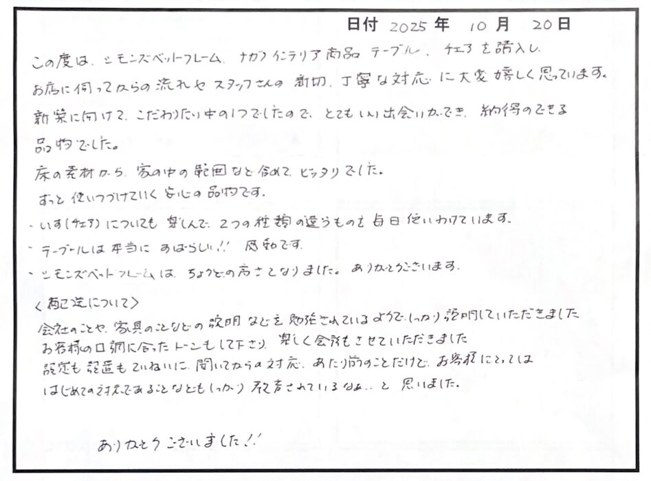 今後とも全力でN様のインテリアづくりのお手伝いをさせていただきますので、どうぞよろしくお願いいたします。